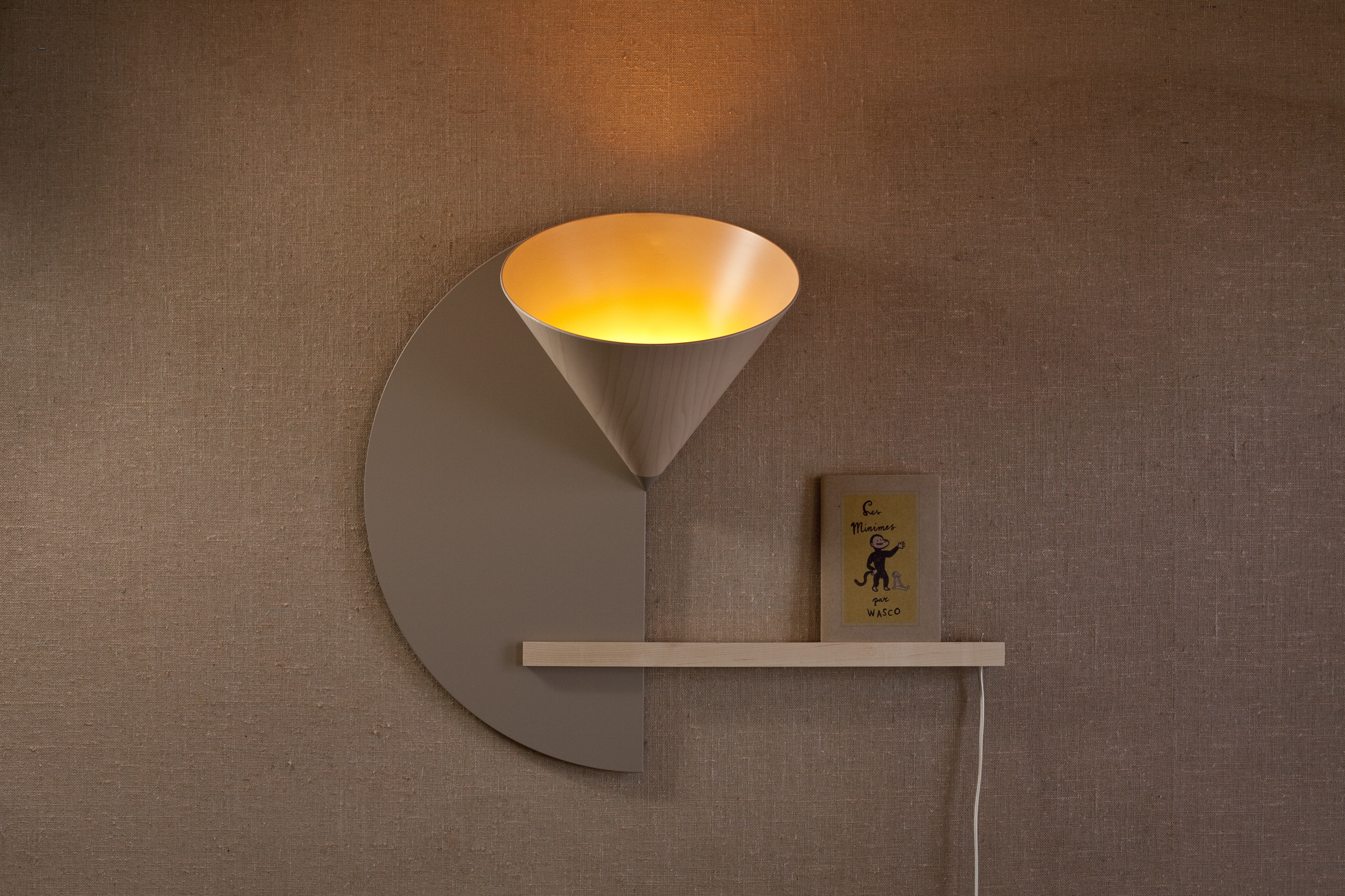 ‘Cirkel’ collection exists out of two wall lights, a coffee table, three mirrors and a leaning lamp.The pieces in the collection ‘Cirkel’ have a shared basis, the circle. Composing, cutting and twisting the surface, adding or removing lines, applying materials and colour resulted in the design of this collection.