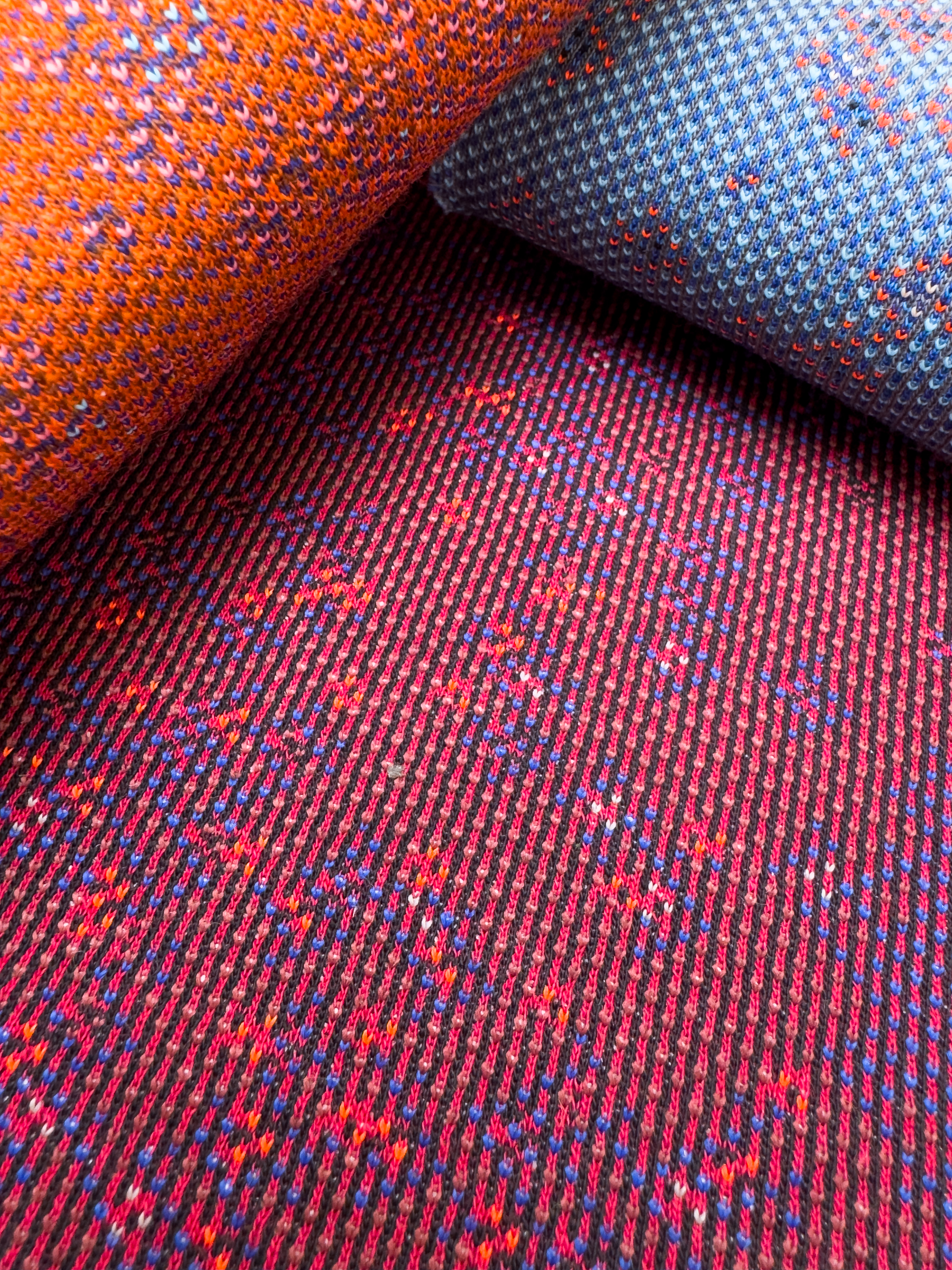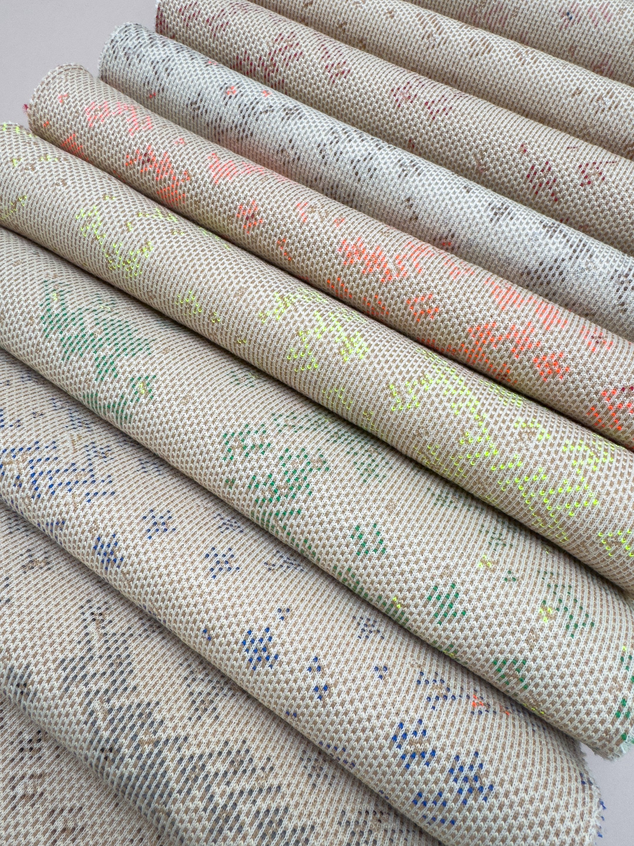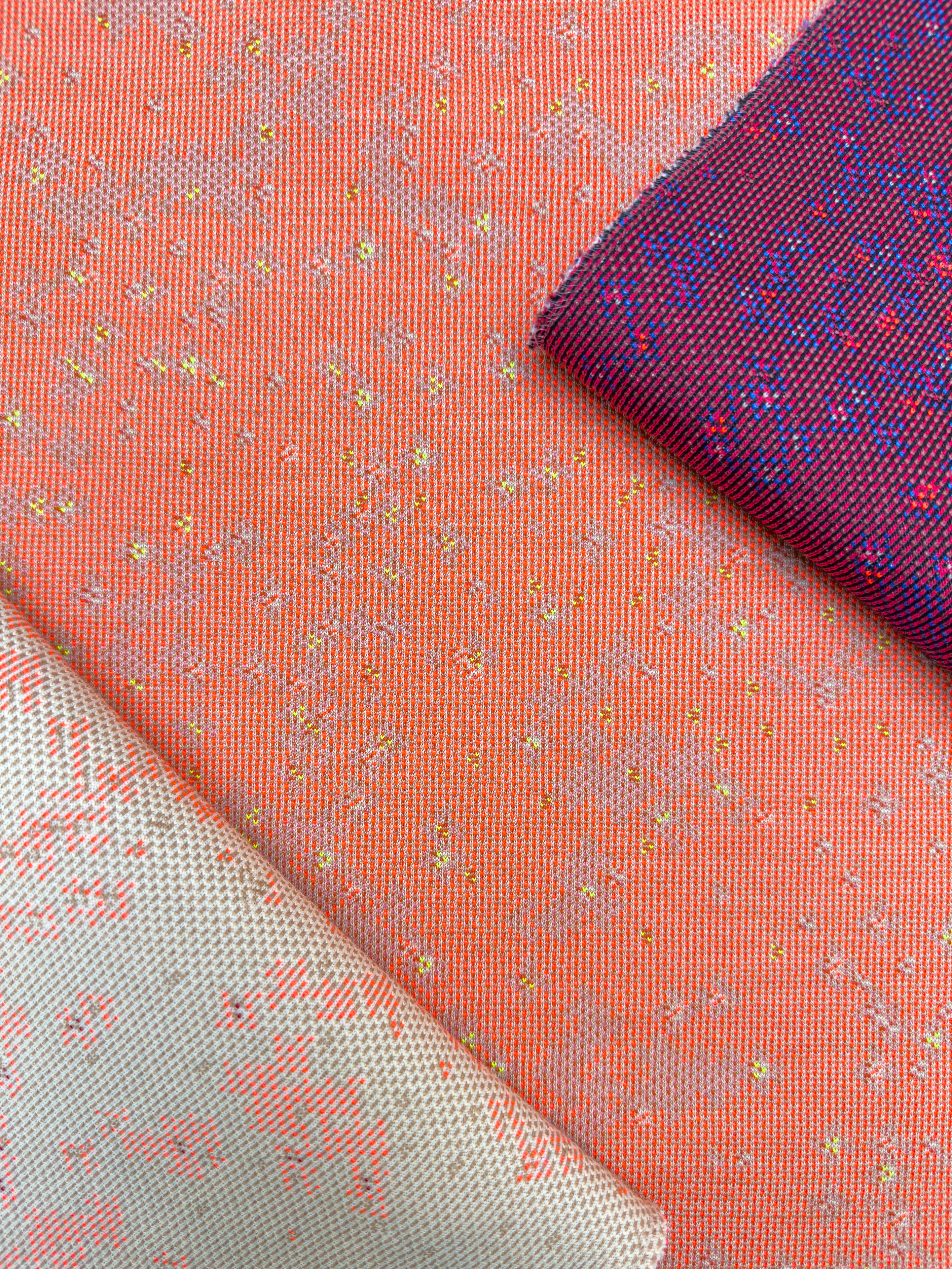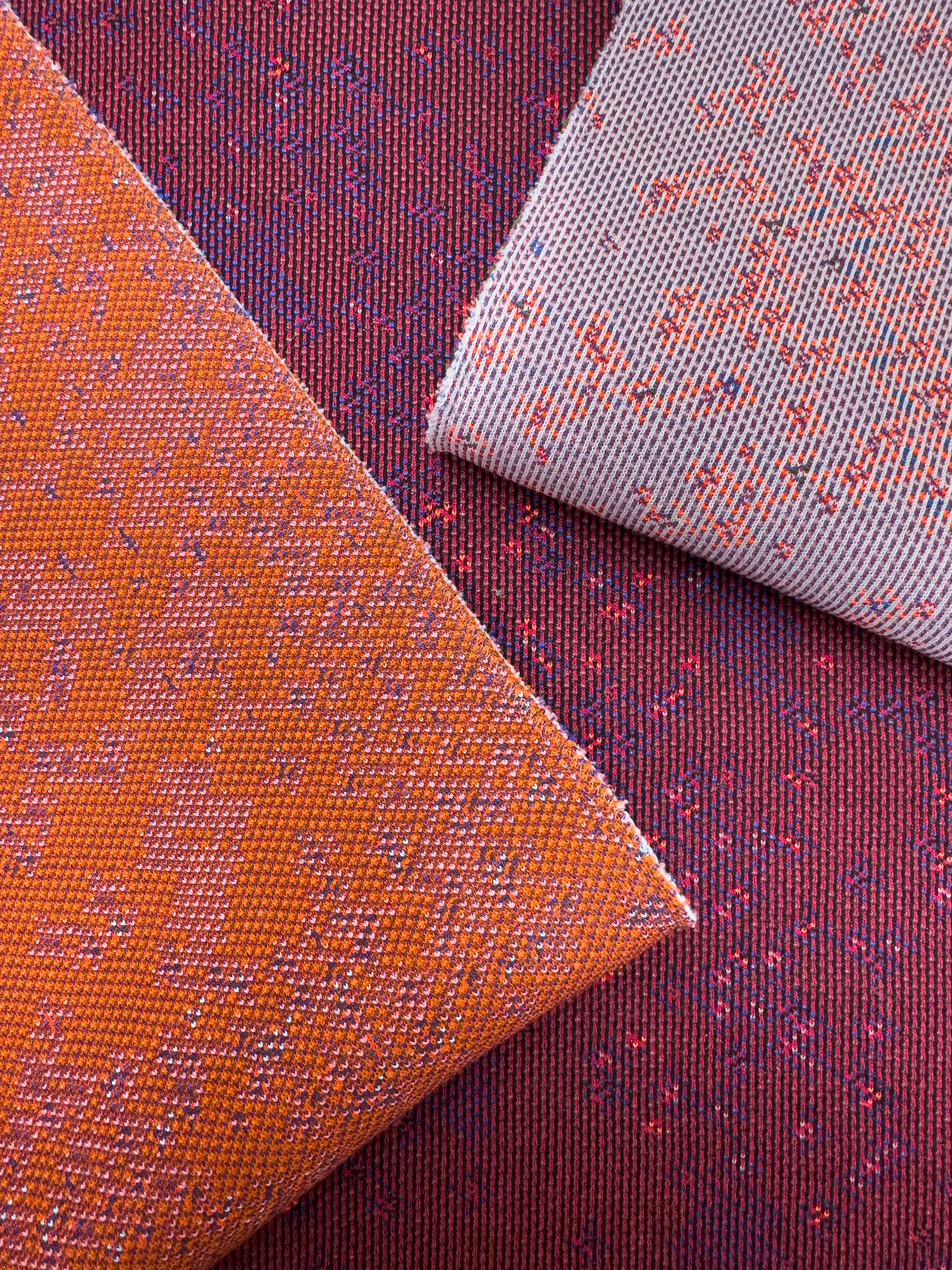 The result is a fabric that unifies refined simplicity with visual sparkle, bringing a fresh and expressive layer to furniture surfaces. It represents a fusion of the physical and the digital — where thoughtful design decisions shape the pattern as much as the digital tool itself.