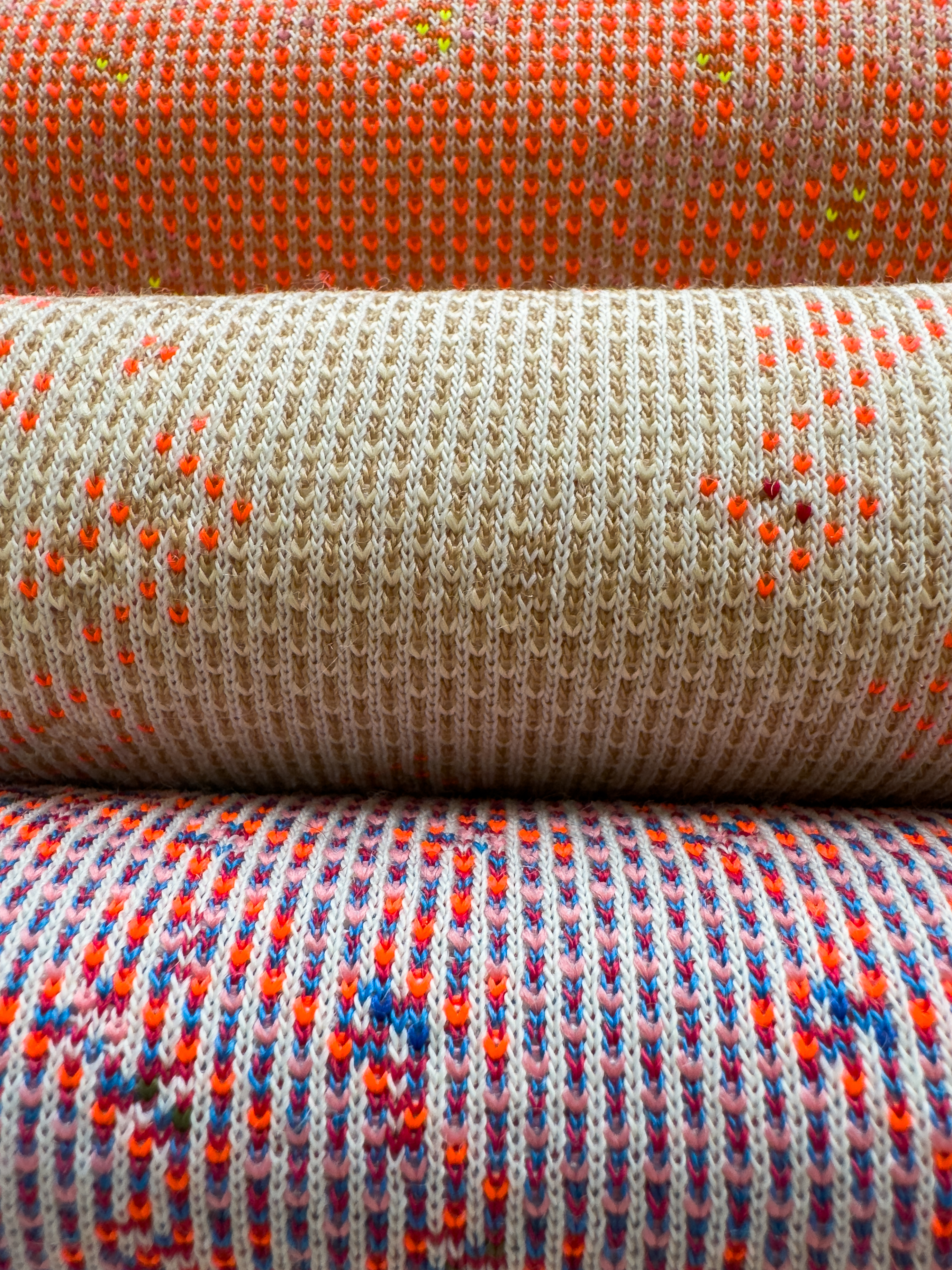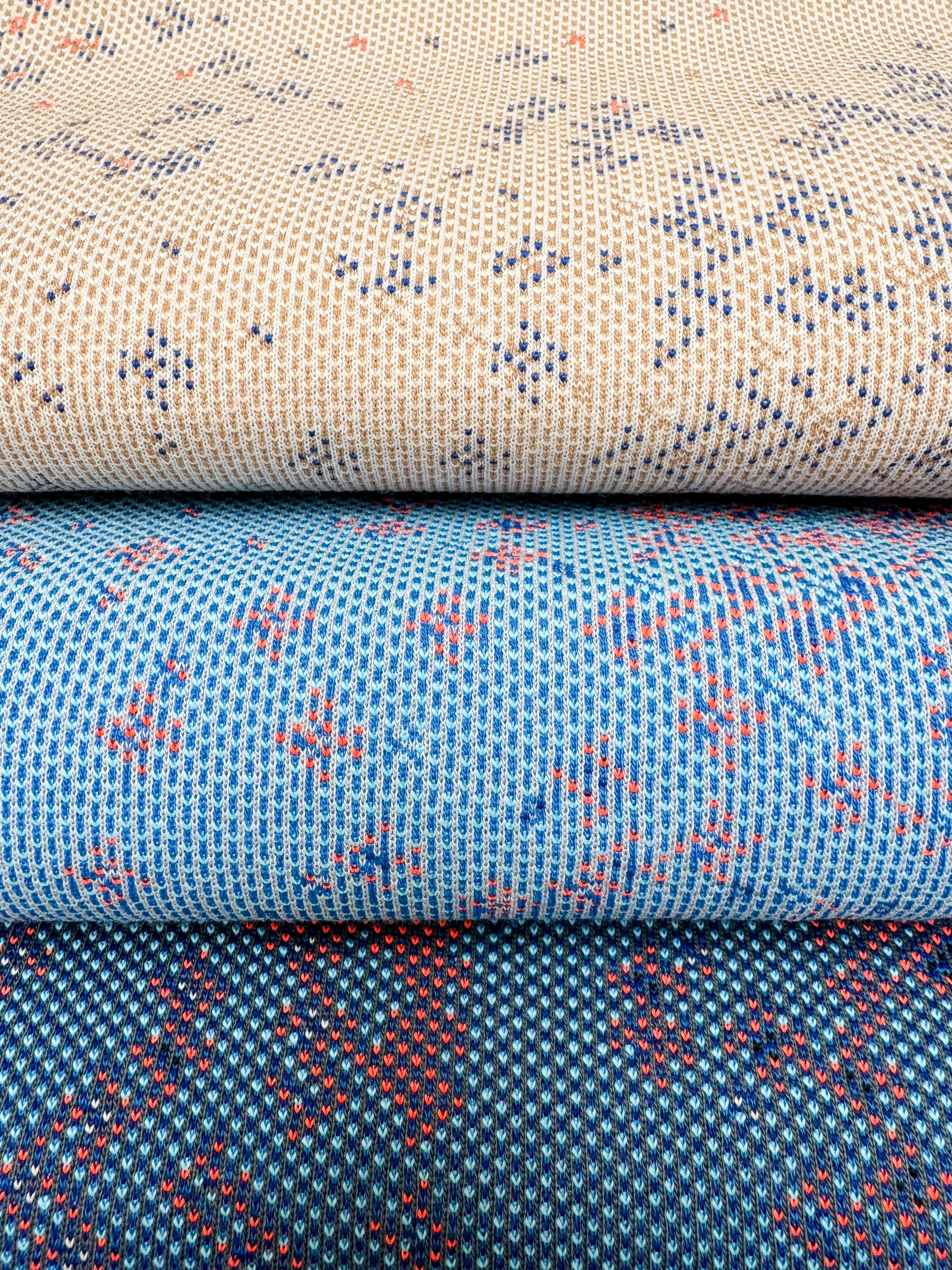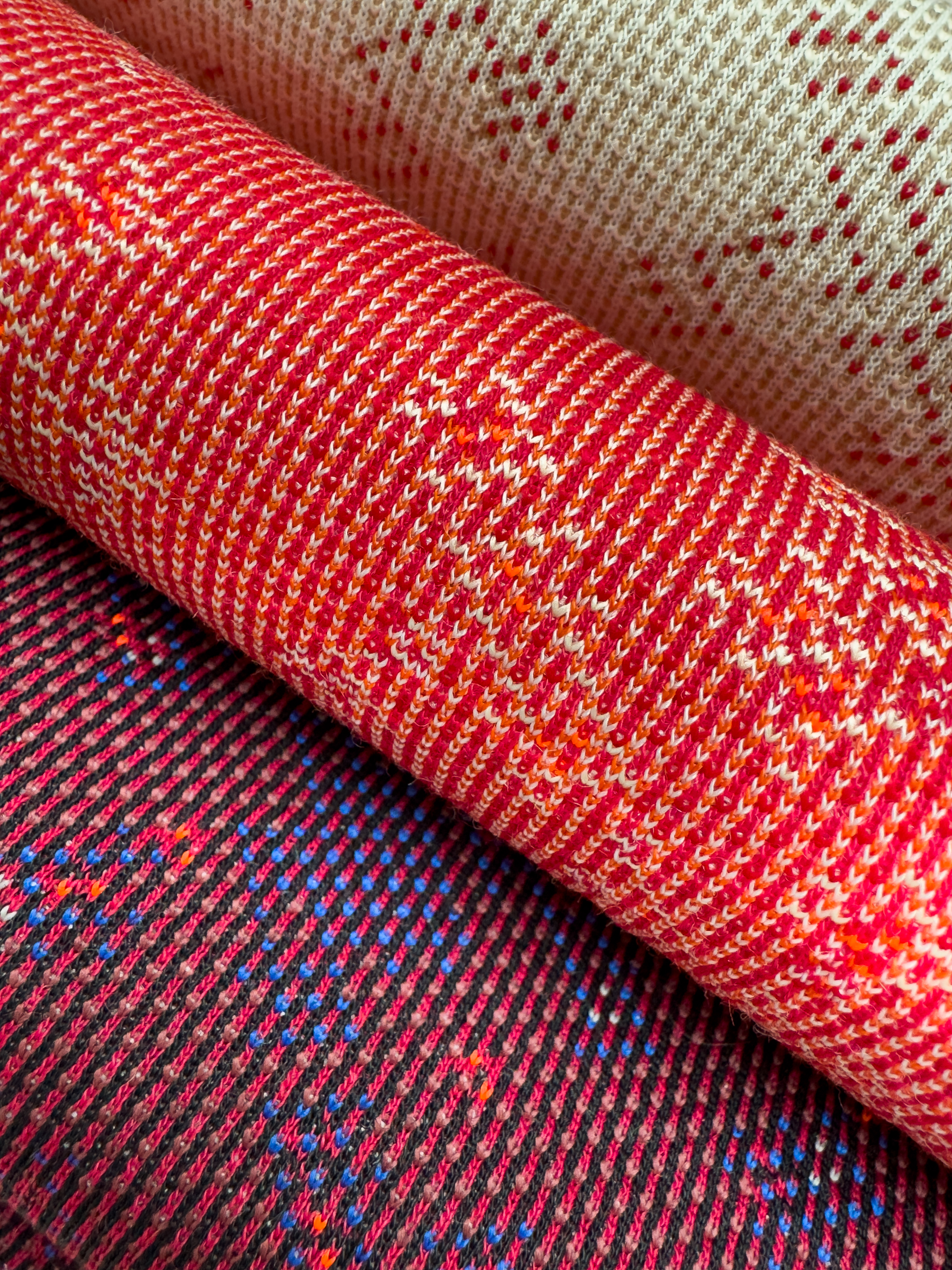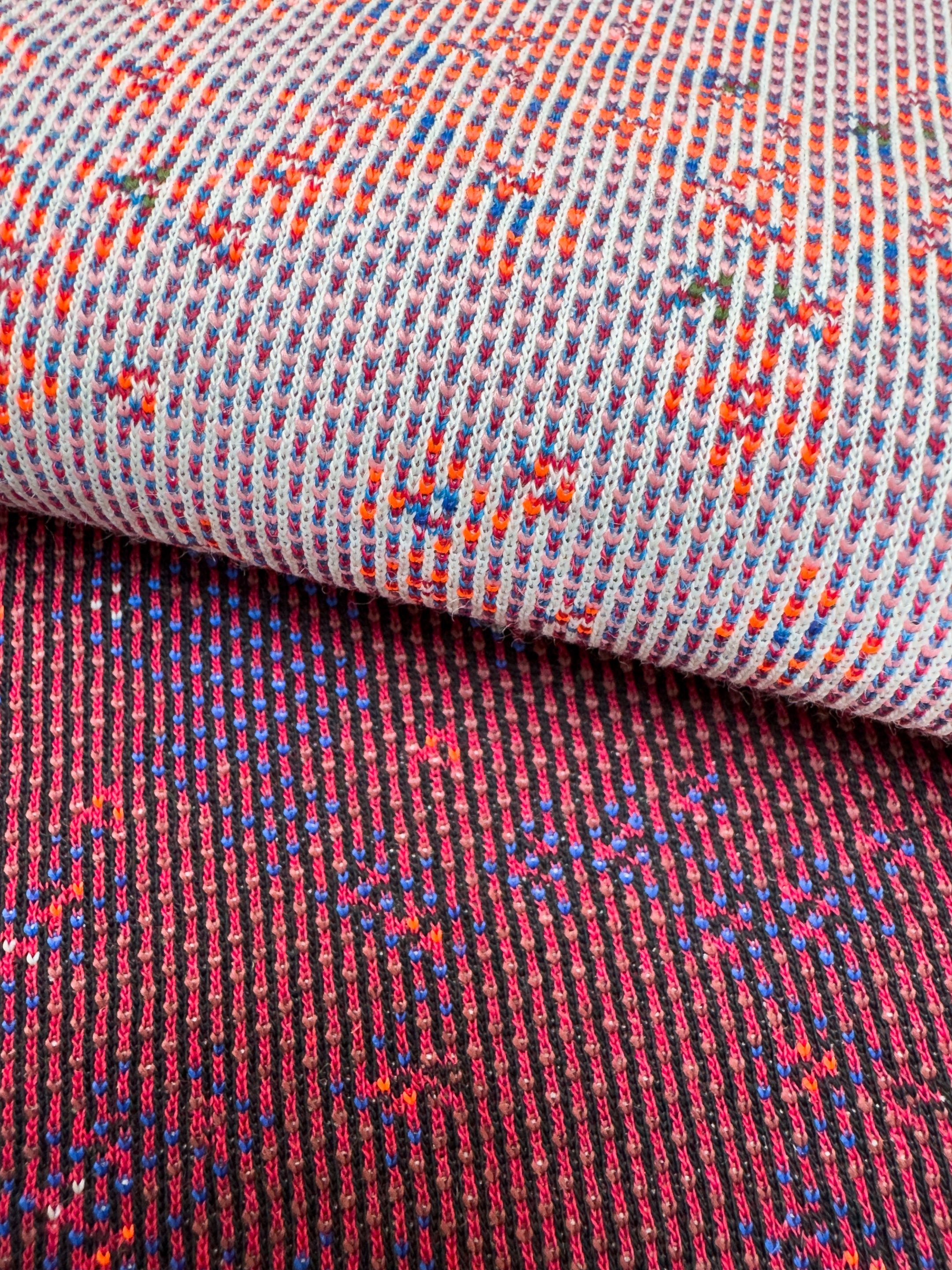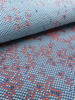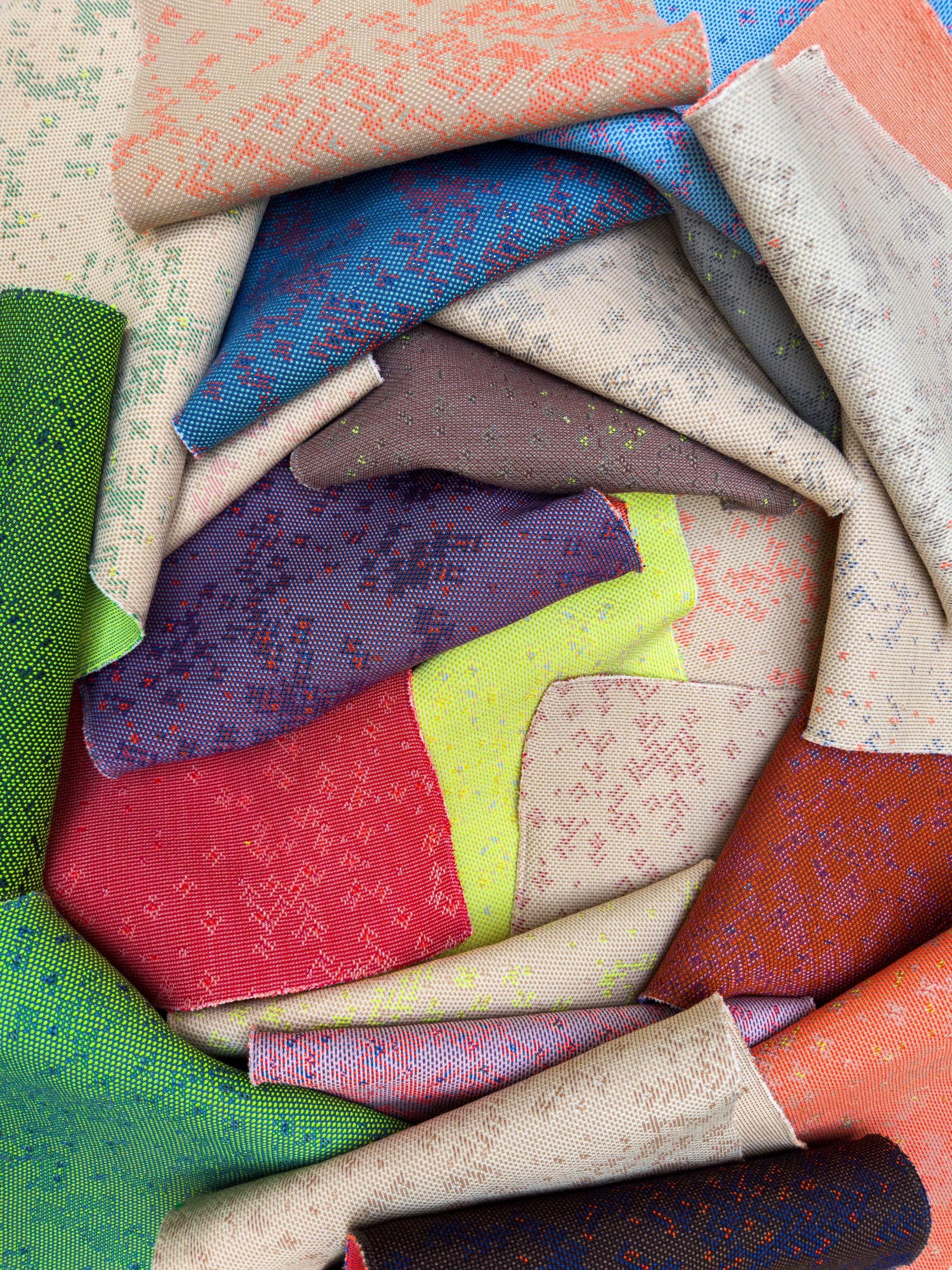 Unlike more automated or algorithm-driven processes, the textile was developed through a highly intentional and tactile method. Each ‘pixel’ of the pattern was hand‑clicked, giving the design a distinctive rhythm that balances spontaneity with control. This approach allowed Daphna Laurens to explore a more intuitive way of working within a digital environment while maintaining a direct connection to material and craft.