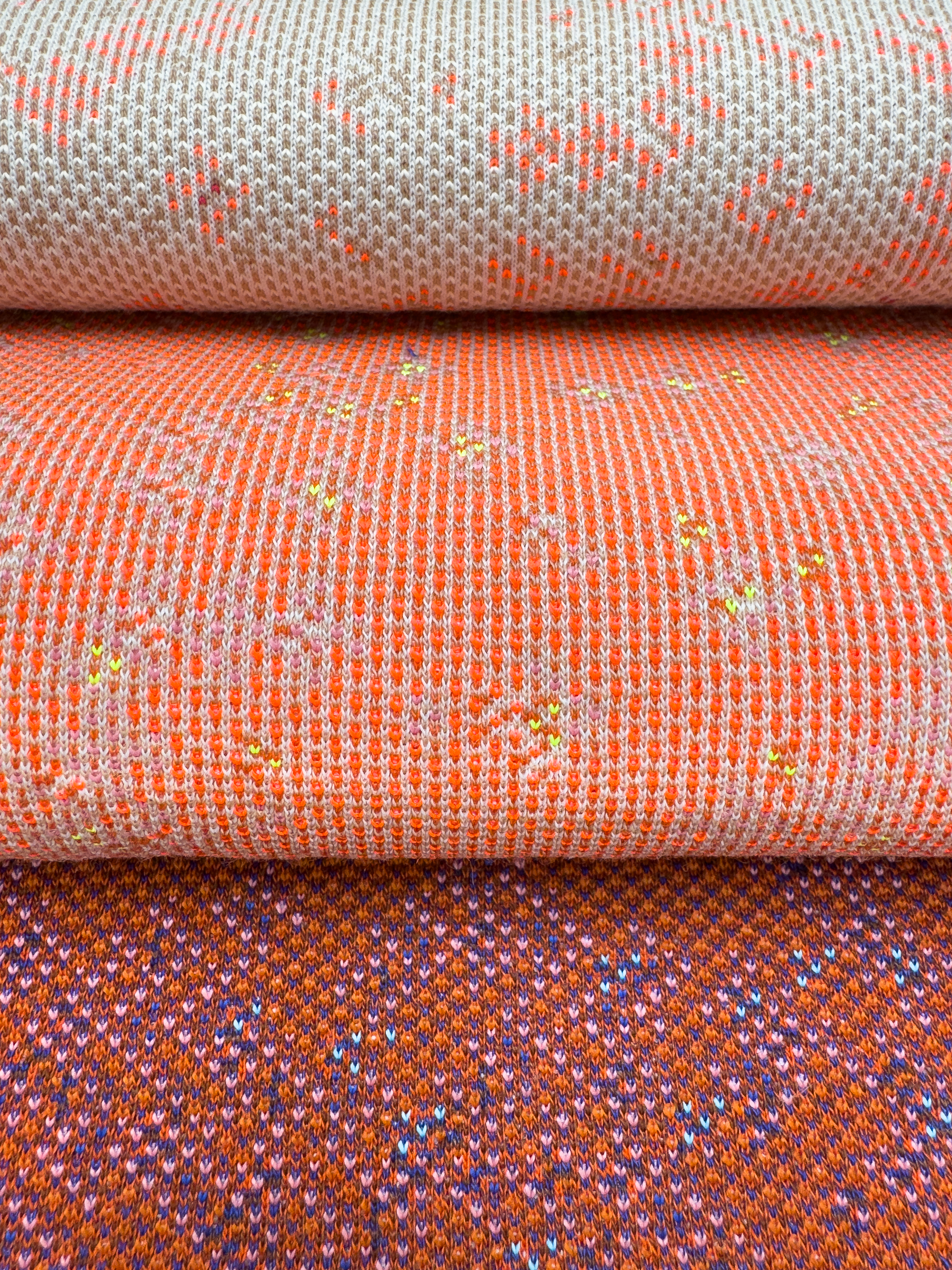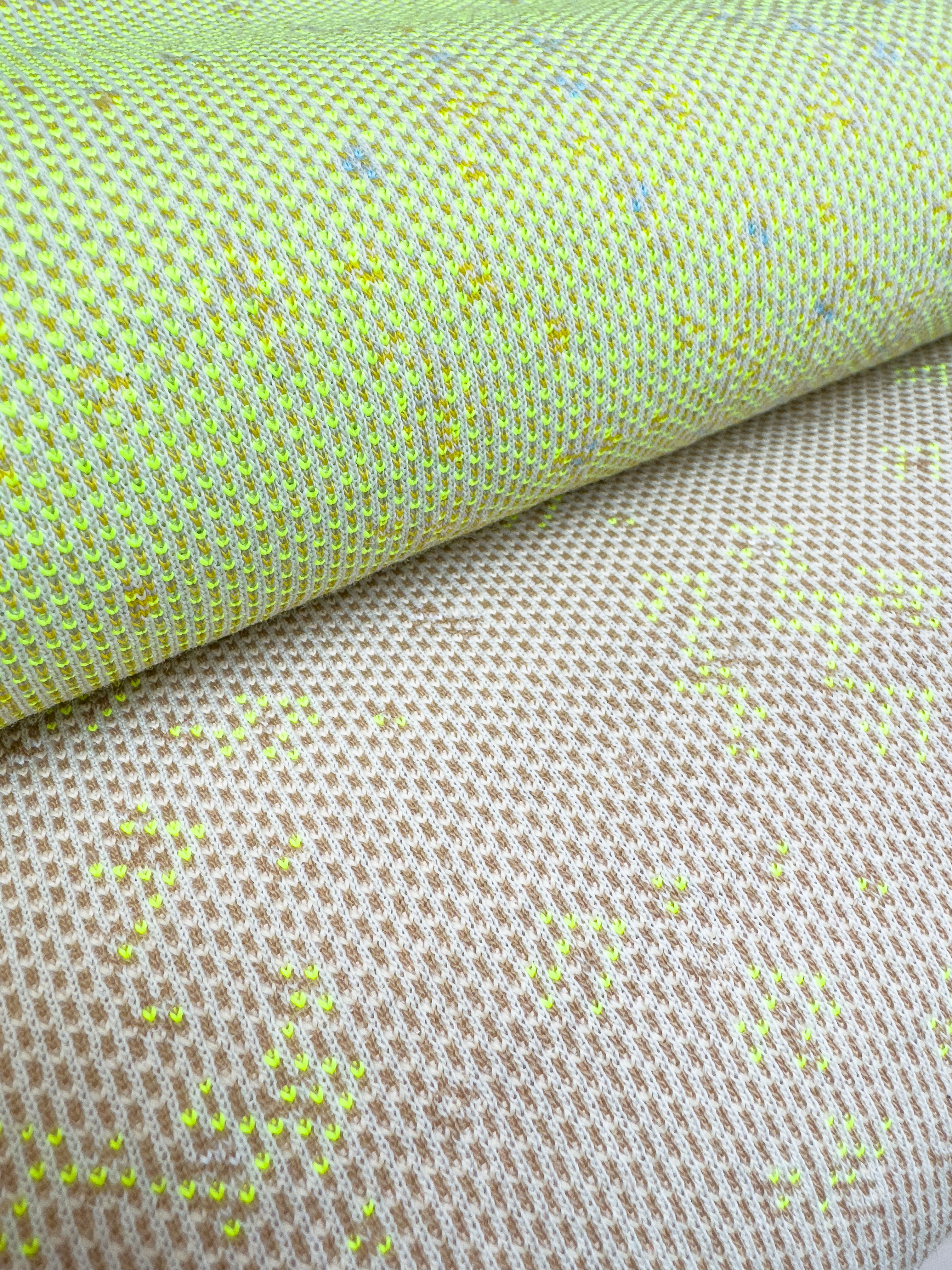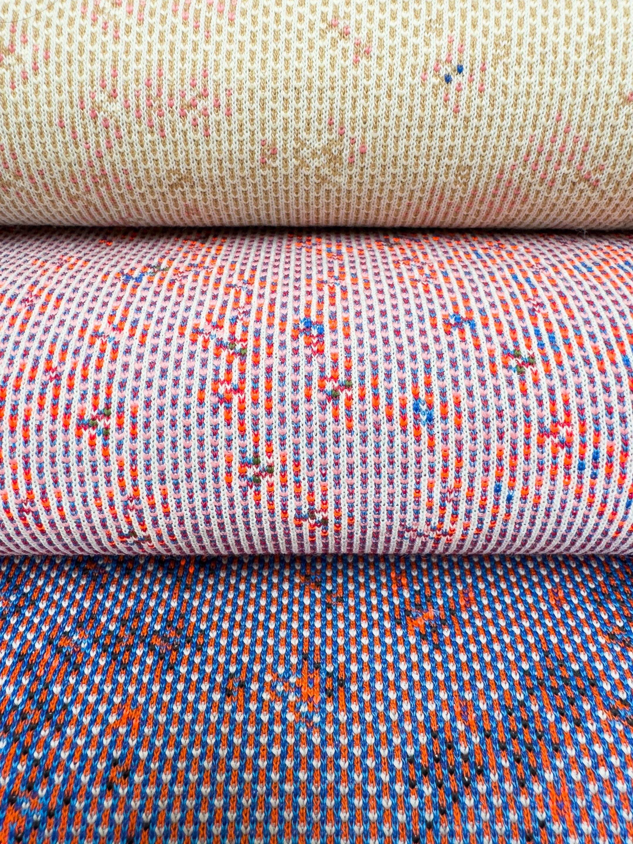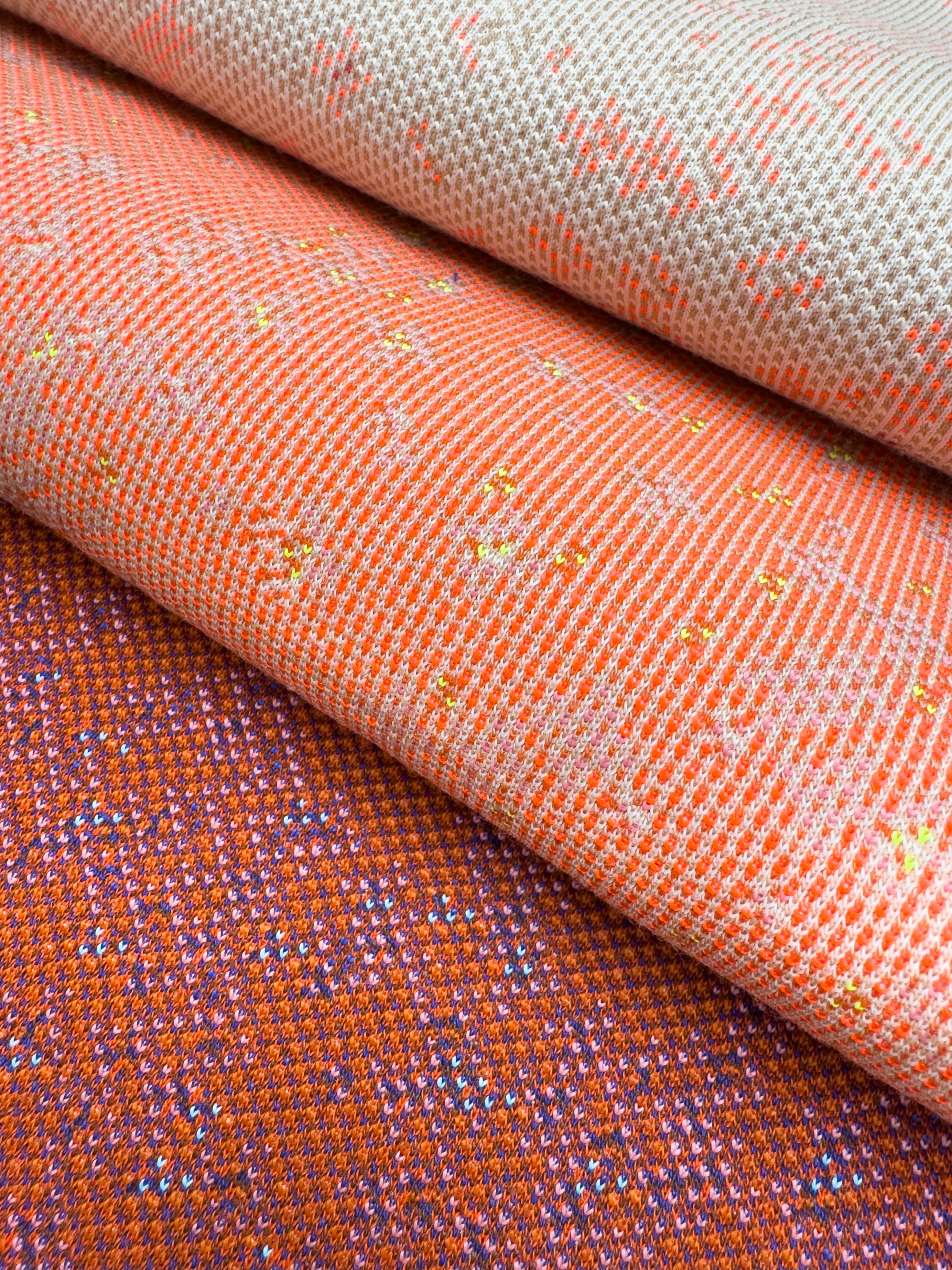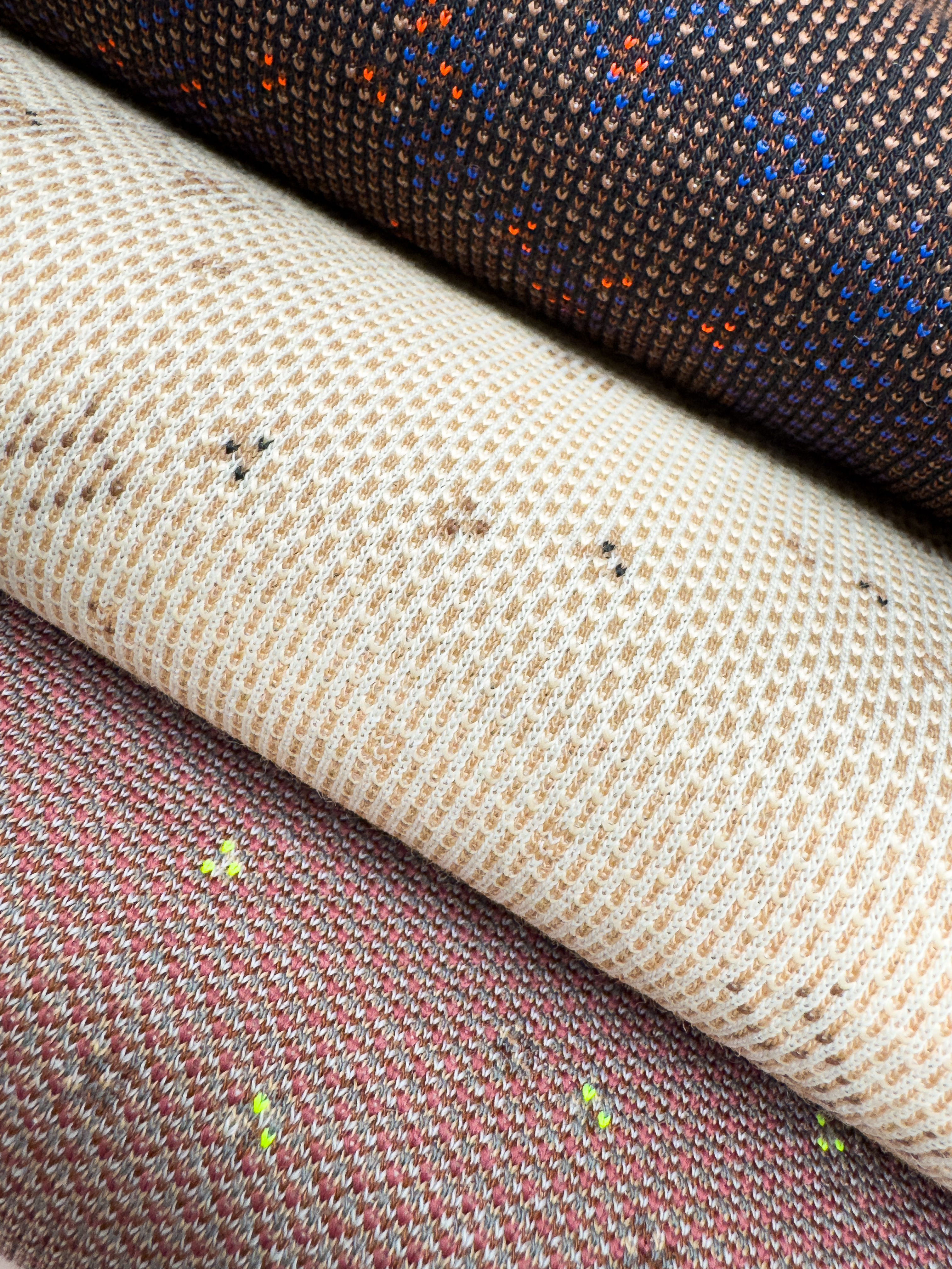 Unlike more automated or algorithm-driven processes, the textile was developed through a highly intentional and tactile method. Each ‘pixel’ of the pattern was hand‑clicked, giving the design a distinctive rhythm that balances spontaneity with control. This approach allowed Daphna Laurens to explore a more intuitive way of working within a digital environment while maintaining a direct connection to material and craft.