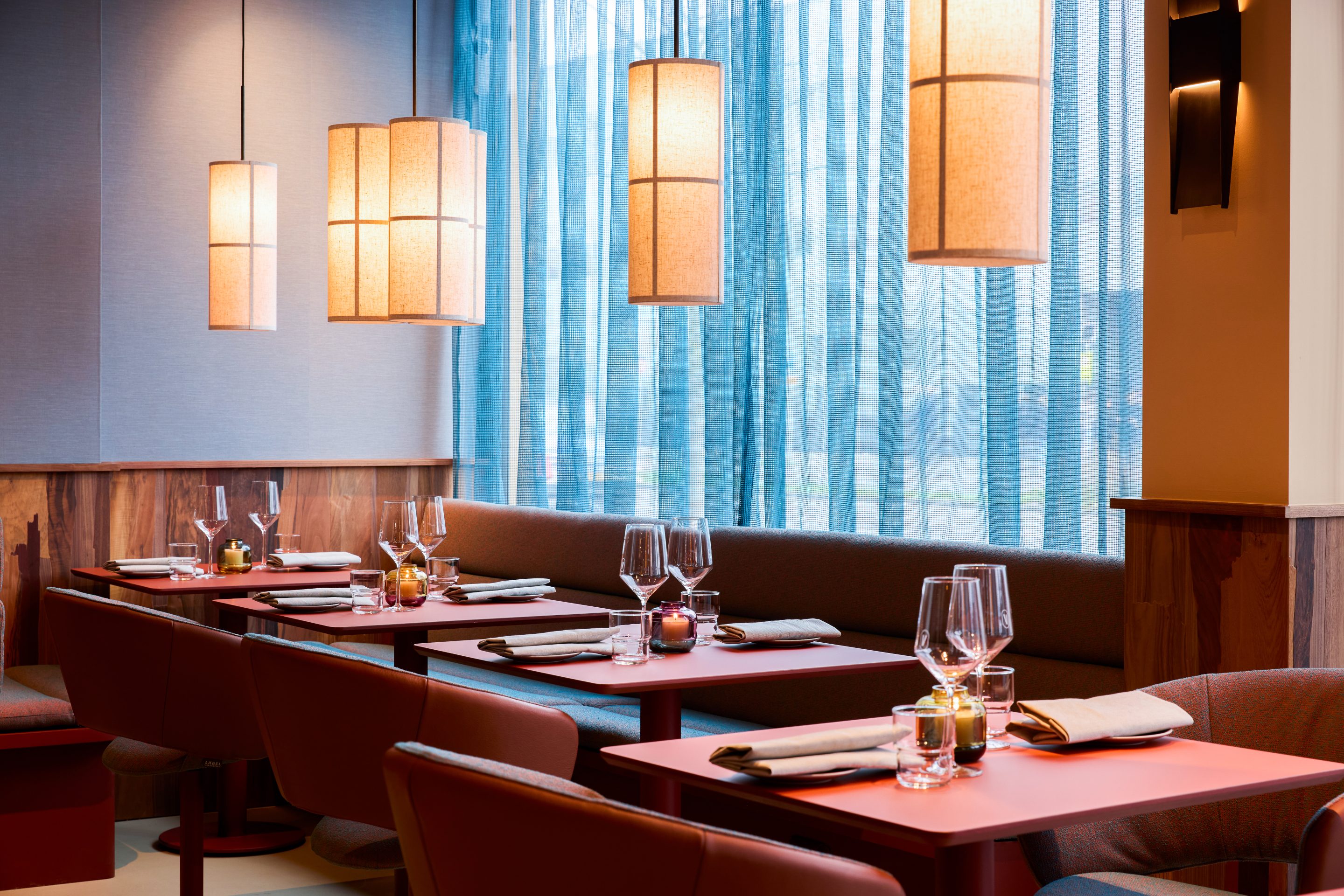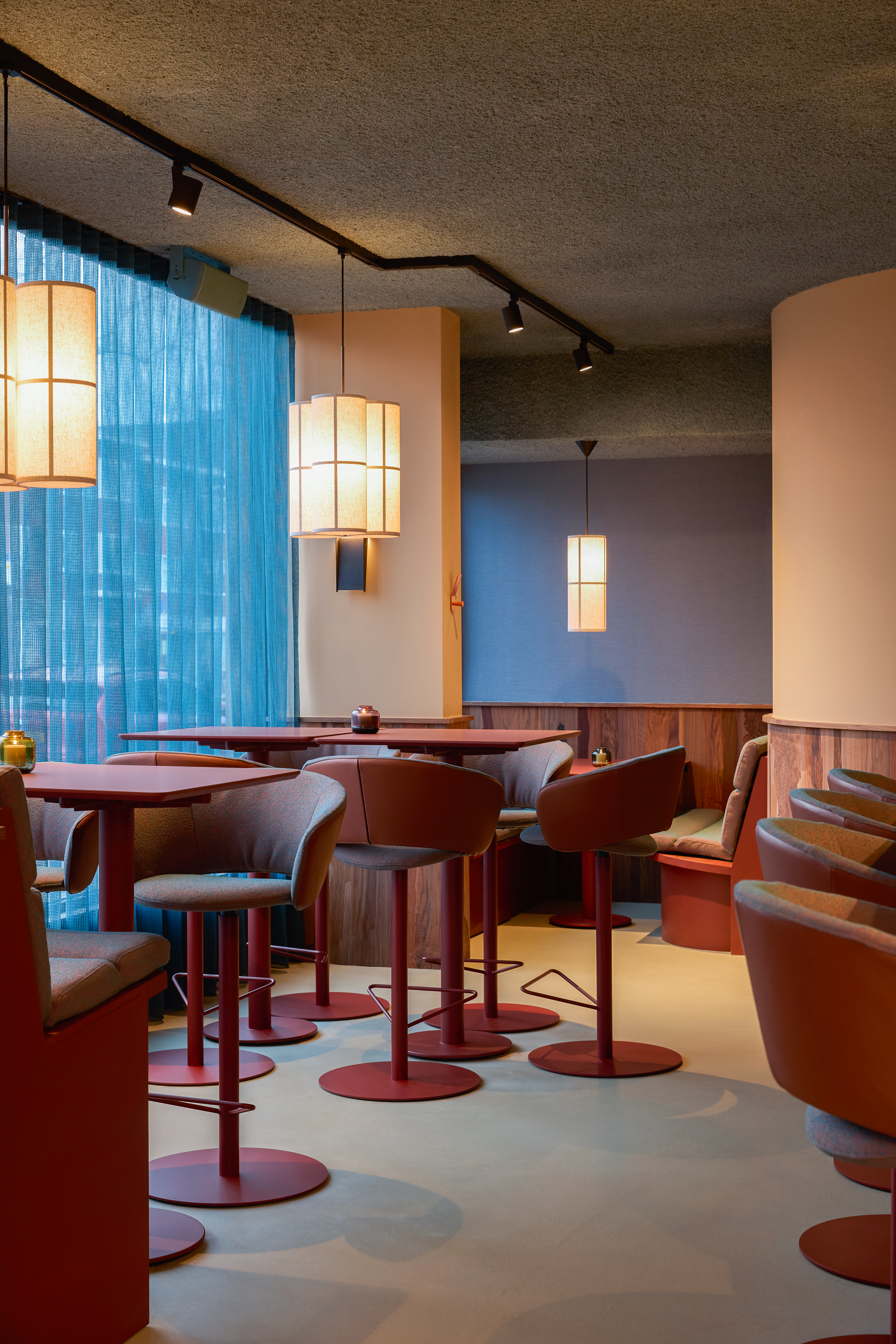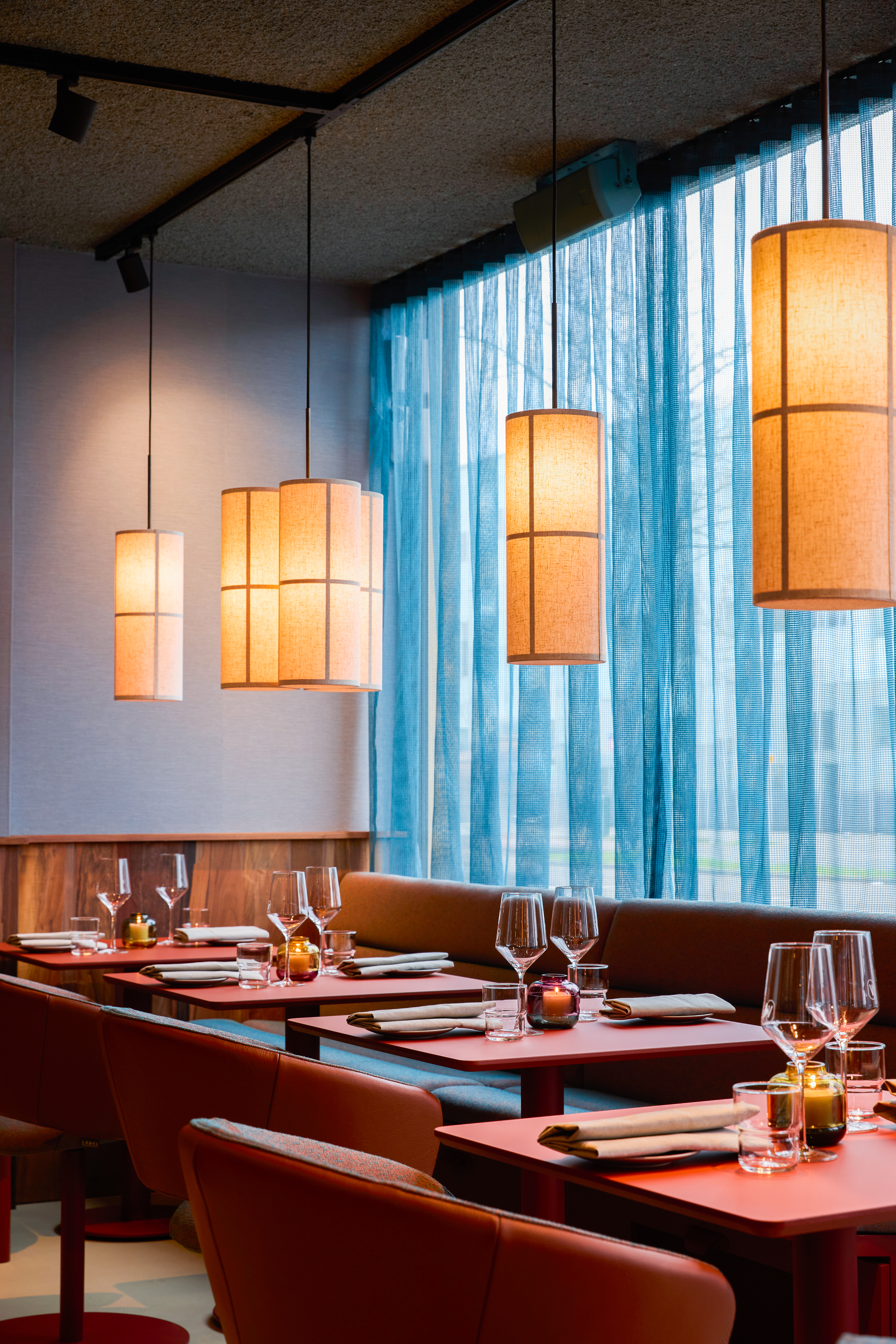 The interior is deliberately restrained. Rather than relying on overt gestures, the design emphasizes materiality, proportion, and tactility. A warm and understated palette is combined with carefully selected textures and lighting to create a space that feels contemporary and grounded. The design supports different rhythms throughout the day — calm and approachable during lunch hours, gradually shifting toward a more energetic and social atmosphere in the evening.