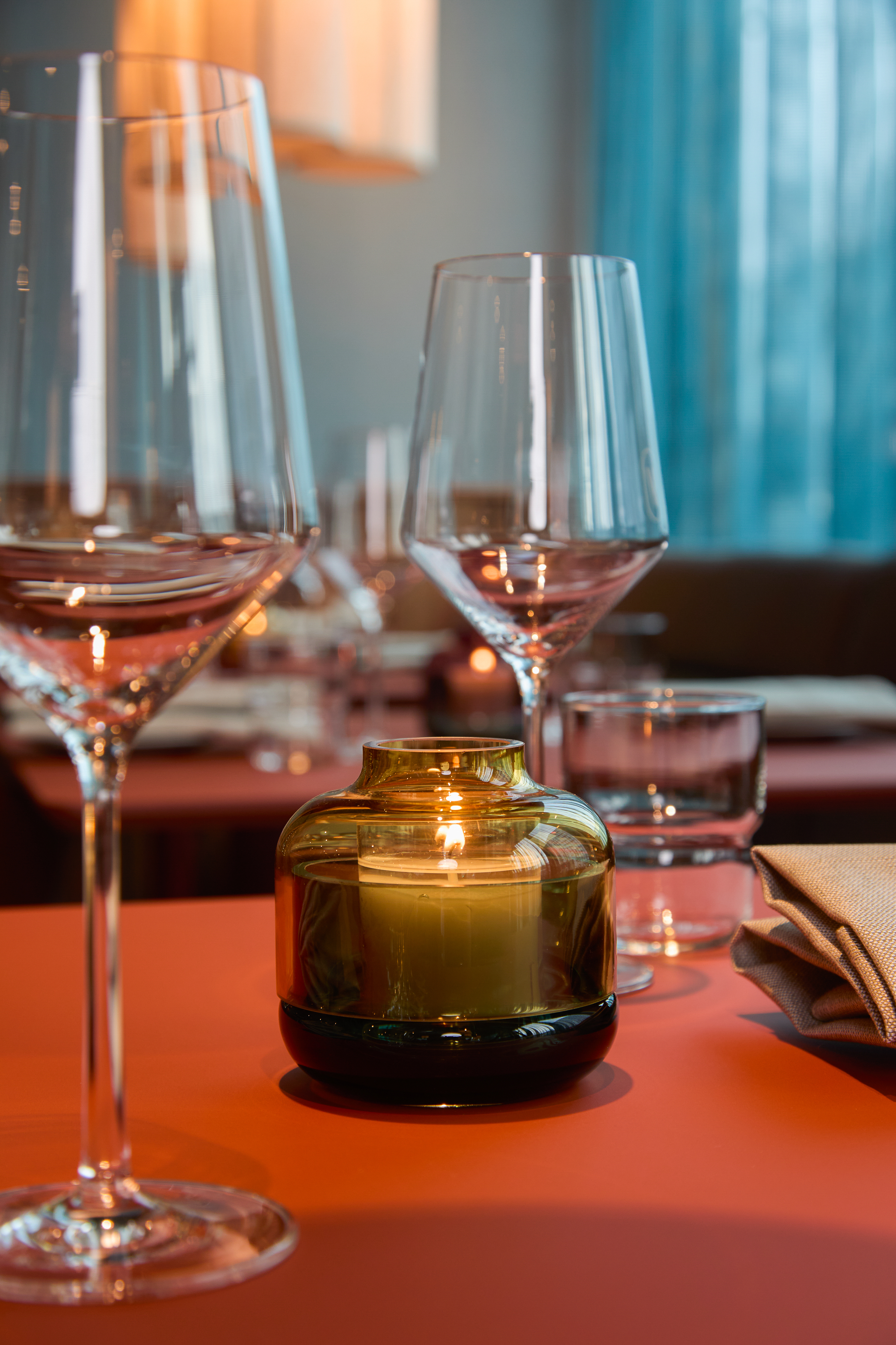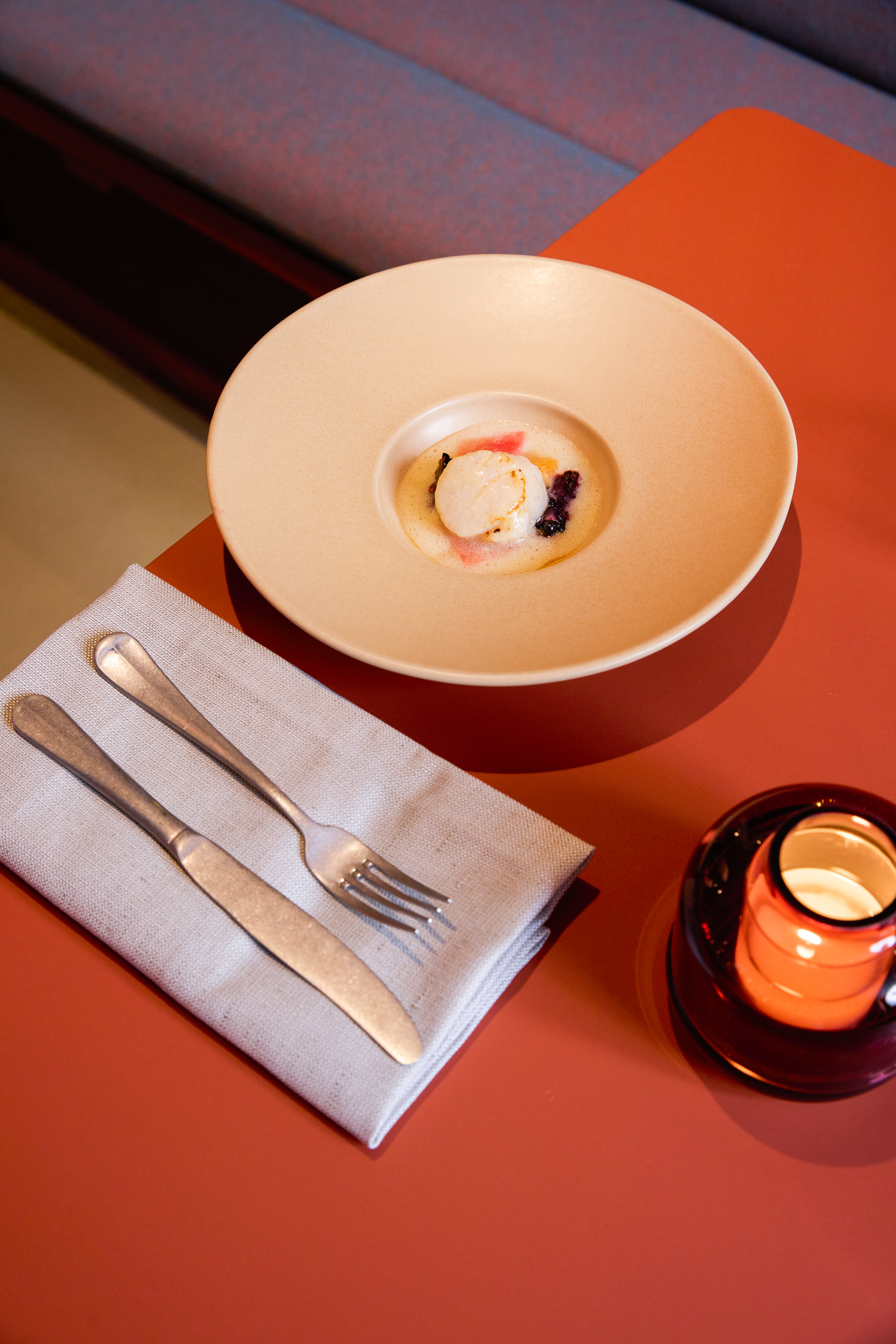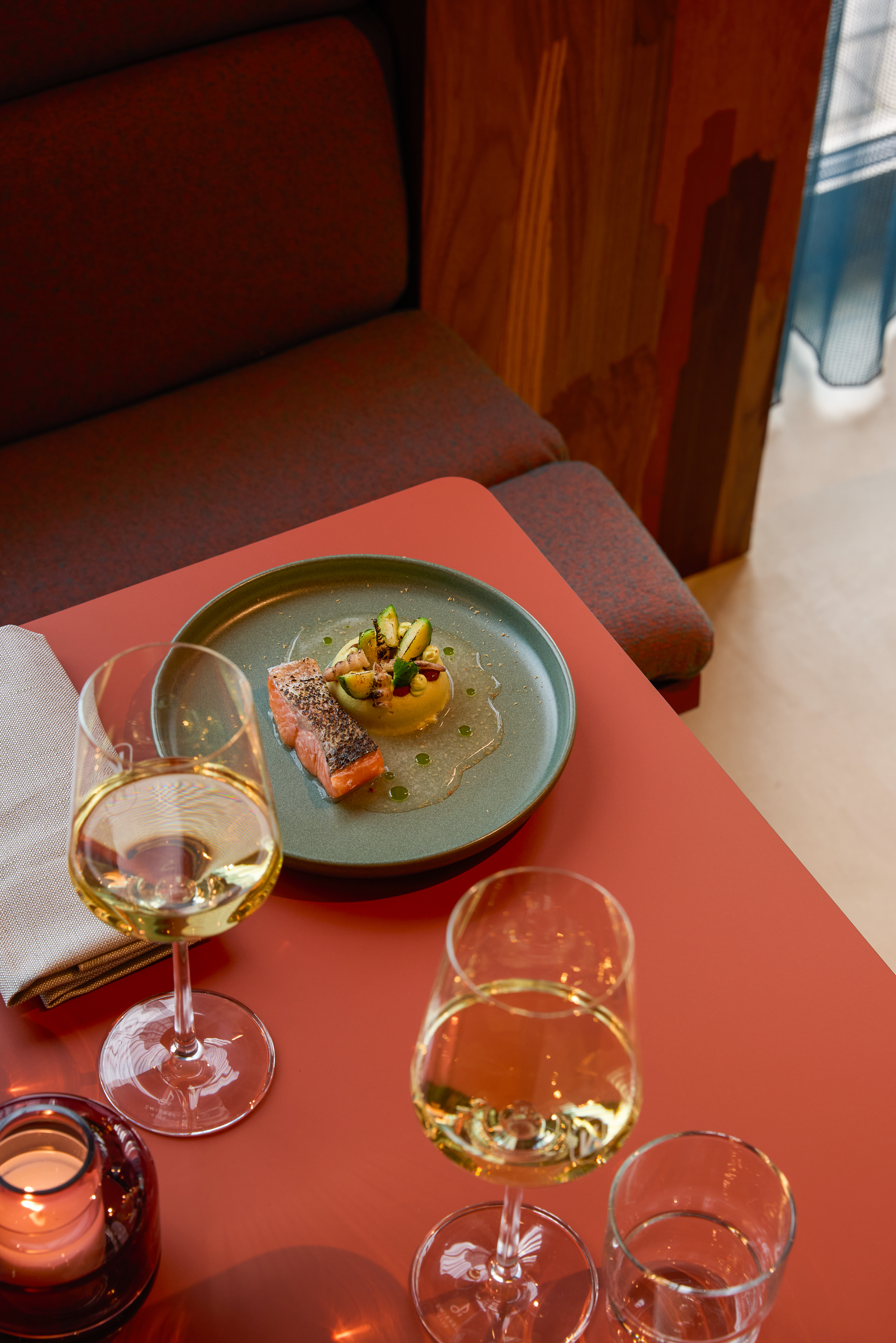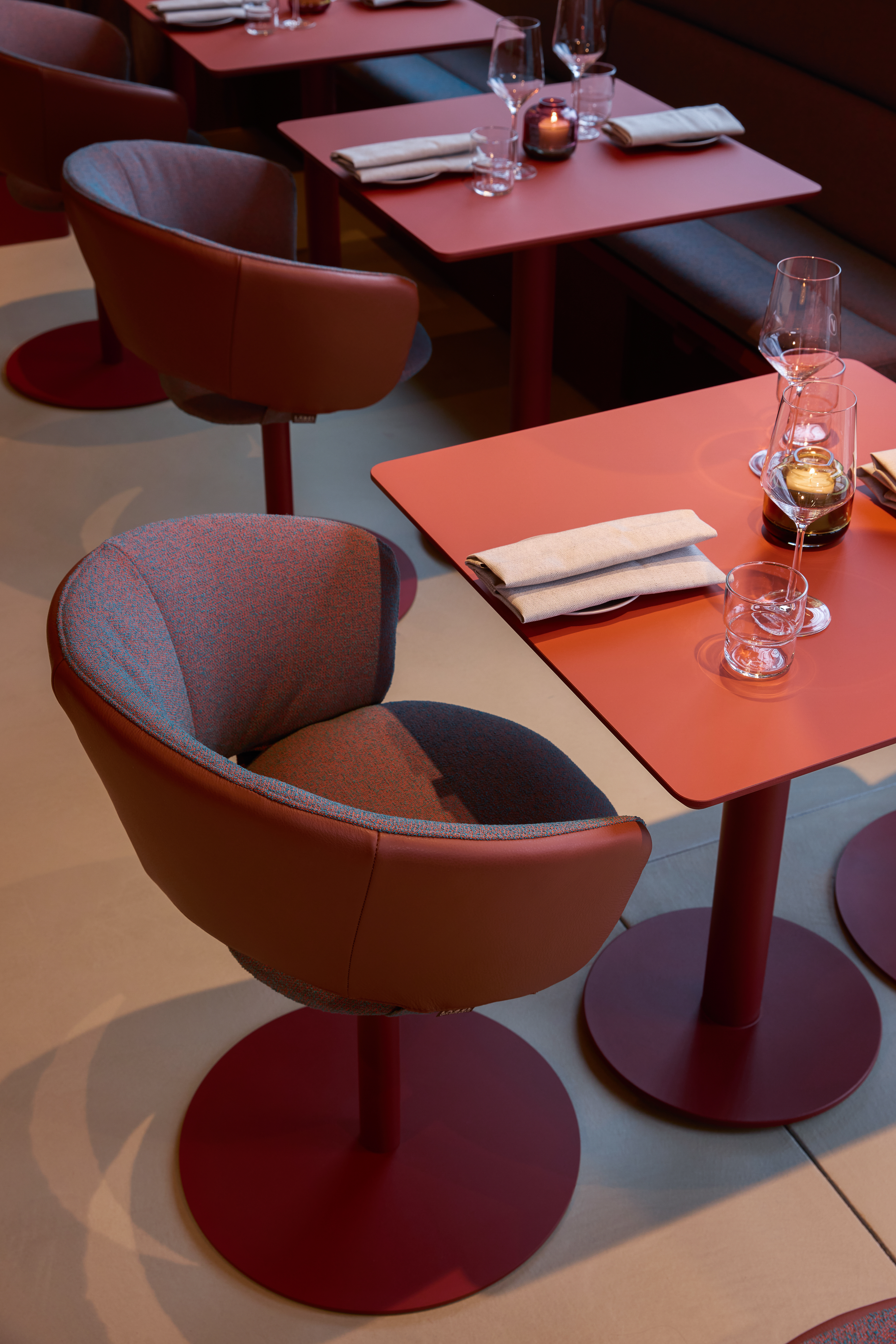 The interior is deliberately restrained. Rather than relying on overt gestures, the design emphasizes materiality, proportion, and tactility. A warm and understated palette is combined with carefully selected textures and lighting to create a space that feels contemporary and grounded. The design supports different rhythms throughout the day — calm and approachable during lunch hours, gradually shifting toward a more energetic and social atmosphere in the evening.